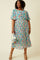 A floral plus size dress featuring a rounded neckline, short puff sleeves, an elastic waistband, a pleated skirt, a slight hi-lo hem, and a back keyhole button closure.