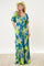Teal Leaf Print Printed Puff Sleeve Maxi Dress