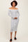 White Striped Ribbed Button Accent Off Shoulder Dress