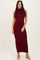 Wine Turtleneck Ribbed Knit Sleeveless Maxi Dress
