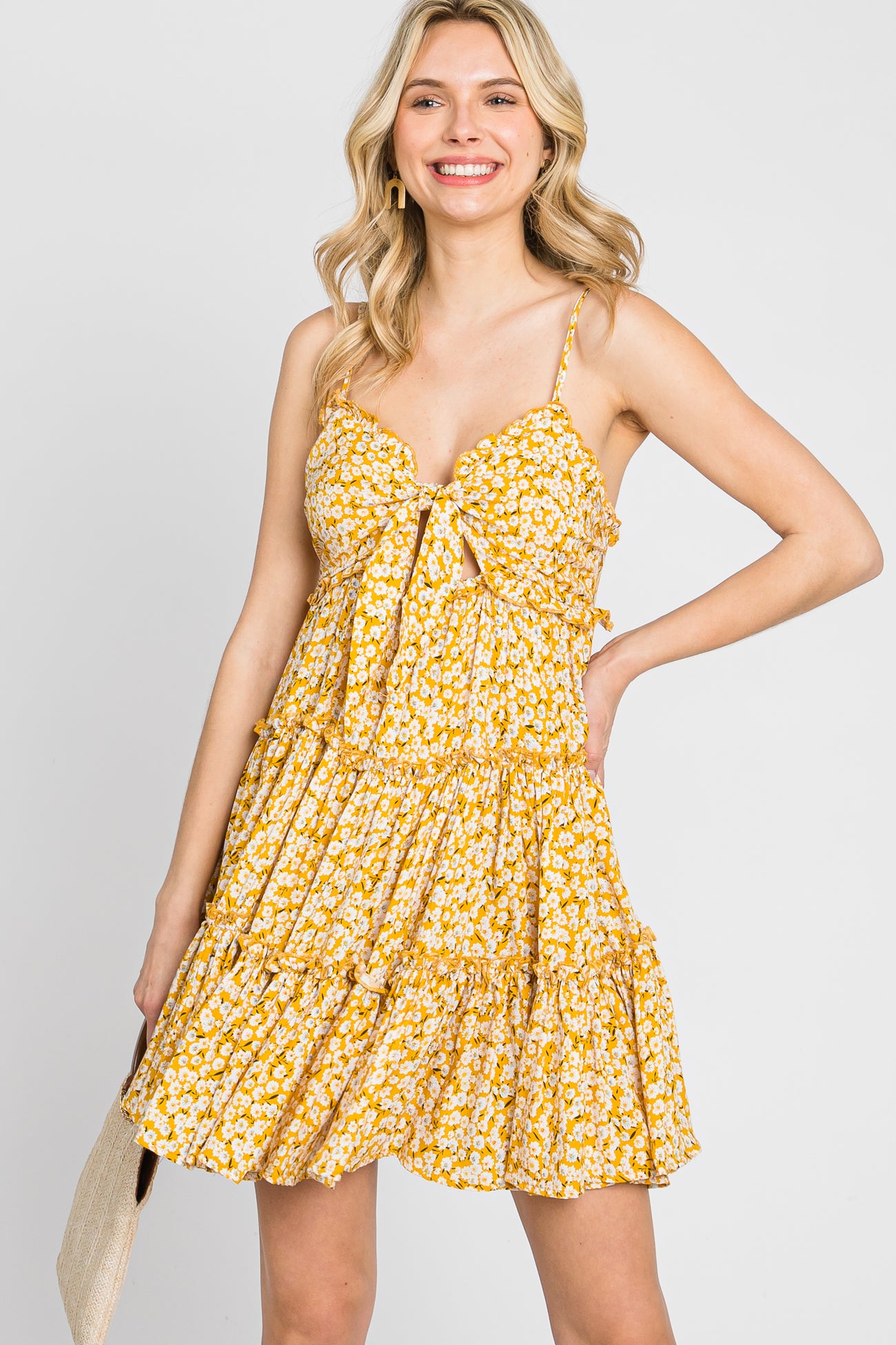 Yellow Floral Cut Out Tiered Ruffle Maternity Mini Dress