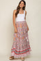 Details A chiffon maternity maxi dress with wrap v-neckline, short flowy sleeves, and sash tie waist. Elastic waistline. Bust and skirt lined. Content + Care