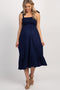 A solid maternity maxi dress featuring a halter neckline, ruffle hem, smocked bodice with cut out detail and adjustable drawstring waist in back. Skirt is double lined.