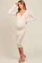Beige Ribbed Colorblock Sleeve Maternity Long Sleeve Top