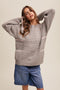 Beige Solid Brushed Rib Long Sleeve V-Neck Fitted Midi Dress