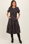 Beige Striped Front Tie Lace Trim Fitted Midi Dress