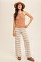 Black Beige Long Sleeve Stripe Pattern Ribbed Knitted Top