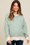 A solid long open front cardigan in a chunky knit with two pockets in front.