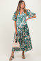 A faded midi dress featuring a raw edge, a curved hem, side slits and a rounded neckline.