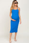 A ribbed knit, floral printed maternity midi dress featuring a v-neckline, ruched front, back and sides and adjustable tie straps.