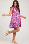 A floral print maternity maxi with short sleeves, a squared neckline, a smocked bodice, and side slits at the hem. Skirt is partially lined.
