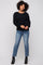 A fuzzy textured, soft knit sweater. Features a rounded neckline and drop shoulder sleeves.
