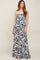 A leaf print maternity maxi featuring a strapless smocked top and a gathered bottom tier. Dress is partially lined.