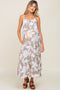 A solid sleeveless maternity jumpsuit with a front pocket detail, side pockets and adjustable button straps.