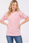 Black Open Knit Short Puff Sleeve Sweater Top