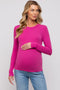 A brushed knit plaid maternity top featuring a mock neckline and long sleeves.