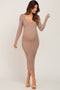 A pleated maternity dress featuring long sleeves, a knotted v-neckline, a self-tie cutout back and a ruffle hem. Partially double lined.