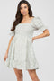 A printed maternity dress featuring long sleeves, a square neckline and a smocked top.