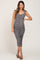 Black Printed Ribbed Shoulder Tie Ruched Maternity Dress