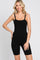A rib knit romper that features a rounded neckline and a scoop low cut back.