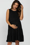 Black Ribbed Long Sleeve Maternity Wrap Dress