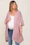 A solid velvet maternity dress with ruffle neckline, ruffle trim and button keyhole closure at back. Pocketed.