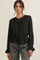 Black Solid Floral Lace Long Sleeve Flared Hem Blouse