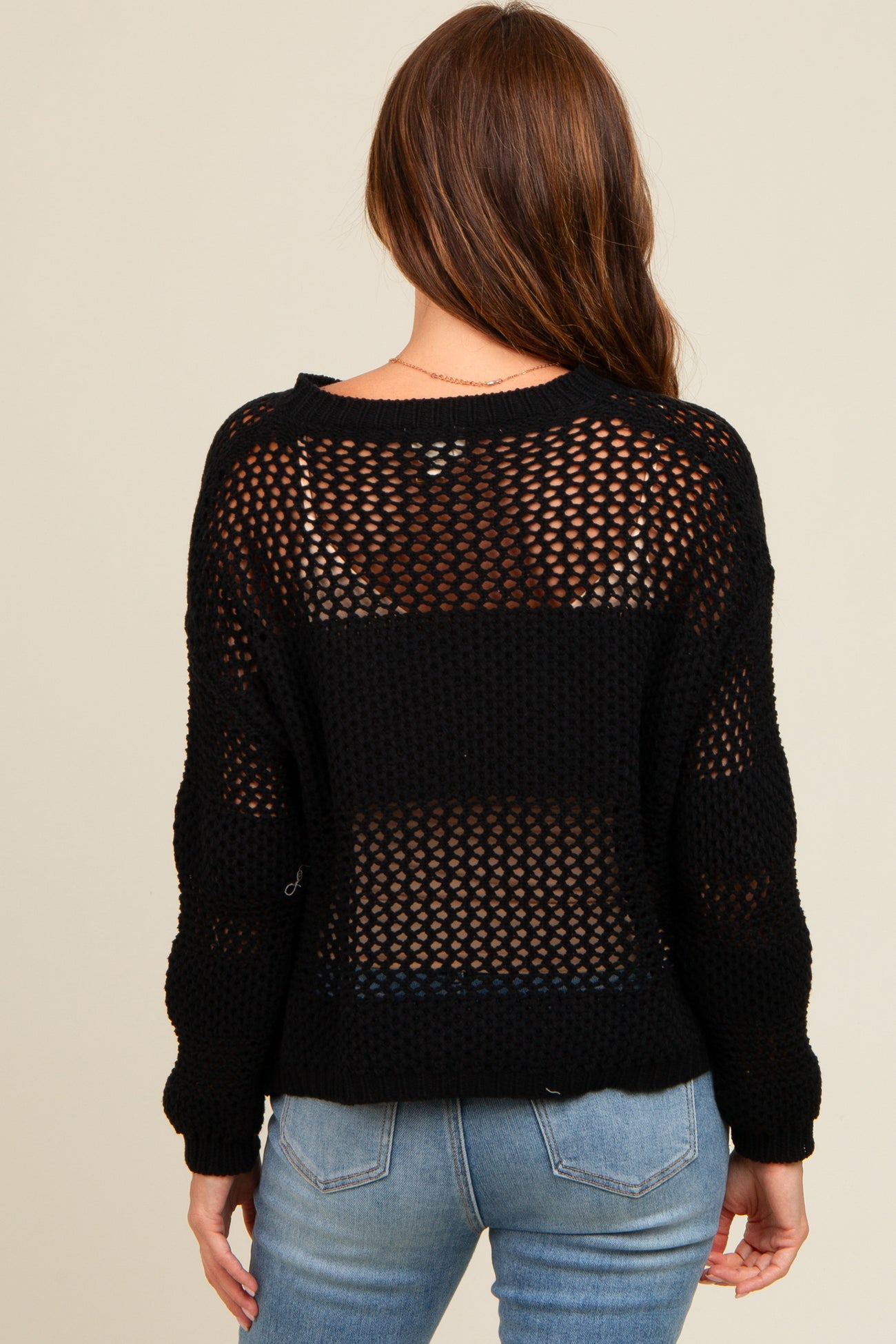 Black Striped Open Knit Sweater