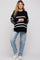 A striped knit, oversized maternity sweater featuring a crew neckline, long sleeves and side slits.