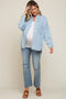 A striped, rib knit maternity dress featuring a collar, top functioning buttons, and short sleeves.