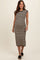A sleeveless striped maternity midi dress featuring a rounded neckline.