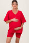 Black Striped Square Neck Short Sleeve Maternity Midi Dress