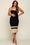A solid hued maternity dress featuring pleated puff sleeves, a tiered skirt, a ruffle hem, side pockets, a rounded neckline and a back keyhole cutout with a button closure.