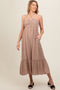 A velour maternity plus size dress with long cinched sleeves, a squared neckline, a smocked back, a ruffle accent at the waist, and side pockets. Body is lined.