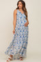 Blue Floral Button Down 3/4 Sleeve Maternity Maxi Dress