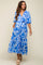 Blue Floral Button Up Puff Sleeve Maternity Midi Dress