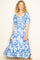 Step into effortless elegance with our Blue Floral Pleated Bodice Midi Dress. This feminine dress features a flattering square neckline and beautifully pleated bodice that enhances your silhouette. The soft puff sleeves add a touch of romance, while the delicate white floral print against the serene blue fabric brings fresh, timeless charm. Falling to a graceful midi length with a ruffled hem, this dress is perfect for garden parties, brunch dates, or any sunny-day occasion. Crafted from lightweight, breathable fabric for comfort and style. Pair with sandals or wedges to complete your look.
