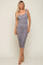 Blue Floral Ruched Shoulder Tie Midi Dress