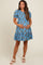 Blue Floral Smocked Puff Sleeve Maternity Dress