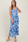 Blue Floral V-Neck Double Strap Maxi Dress