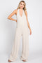 A solid hue overall featuring a squared neckline, knot tied straps, two front pockets, and cropped legs.