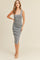 A solid knit fitted sleeveless midi dress with a square neckline and a side slit.