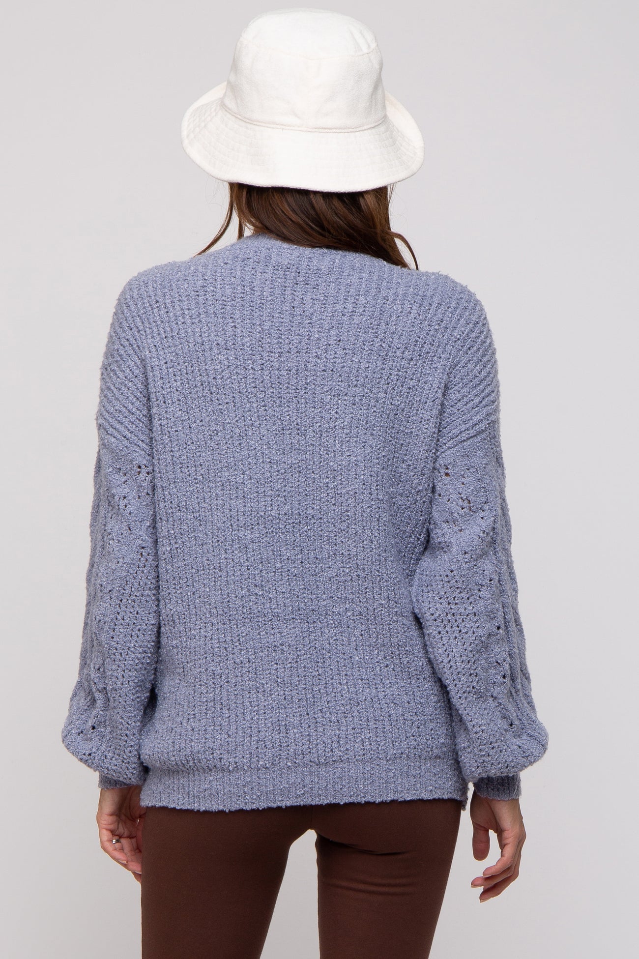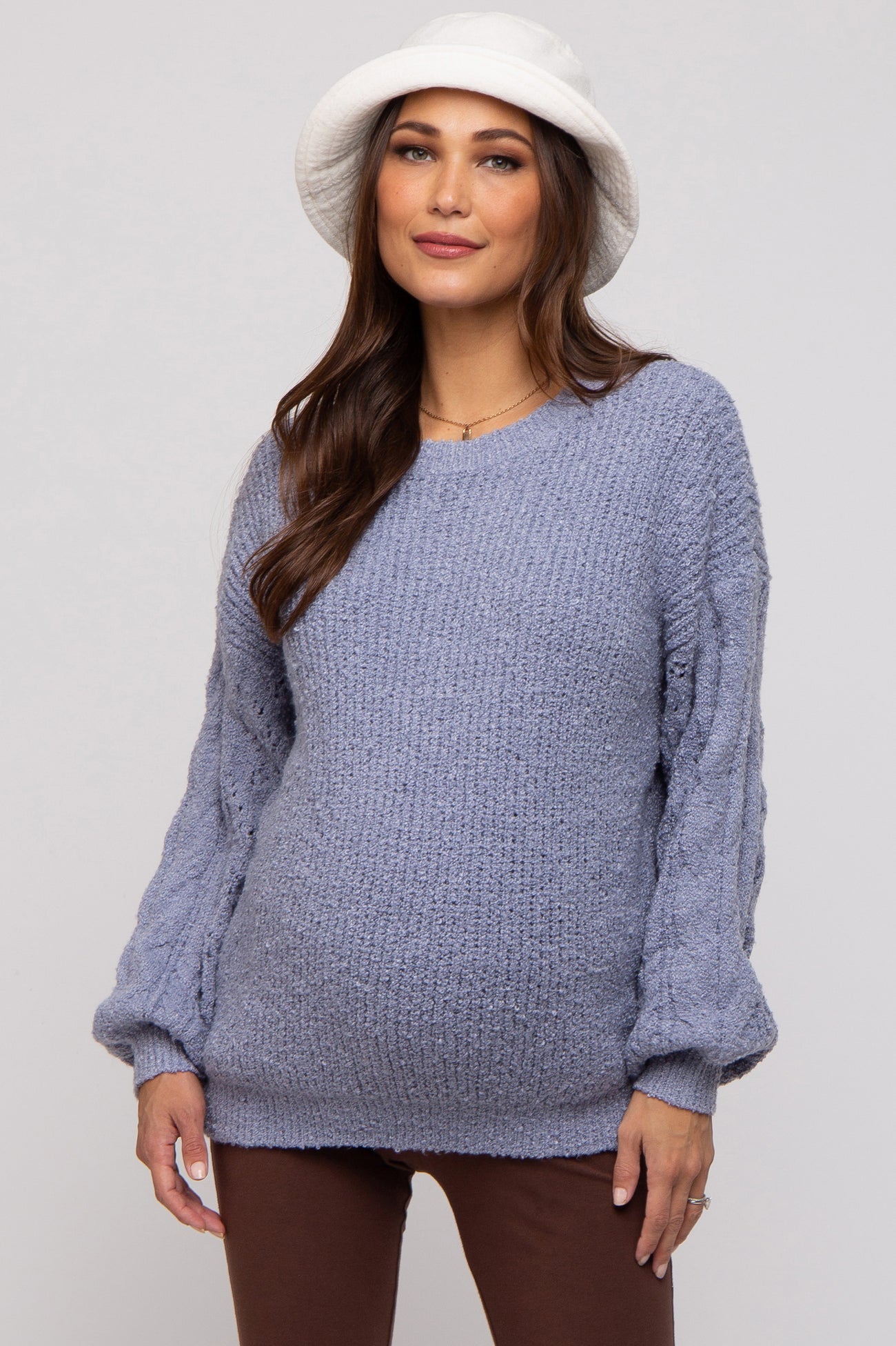 Blue Knit Puff Sleeve Maternity Sweater