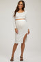 A pair of linen maternity shorts with an elastic waistband, a drawstring tie with metal tip accents, and side pockets.
