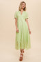 Blue Metallic Bubble Sleeve Flared Mini Dress