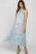 Blue Printed Sleeveless Tiered Maternity Midi Dress