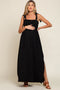 A printed maternity midi dress with a split v-neckline, cuffed short dolman sleeves, a waist tie, side pockets, and side slits. Dress is lined.