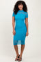 Blue Short Dolman Sleeve Side Slit Maxi Dress