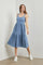Blue Sweetheart Neck Button Front Tiered Midi Dress