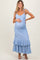 Blue Textured Shoulder Tie Layered Hem Maternity Maxi Dress